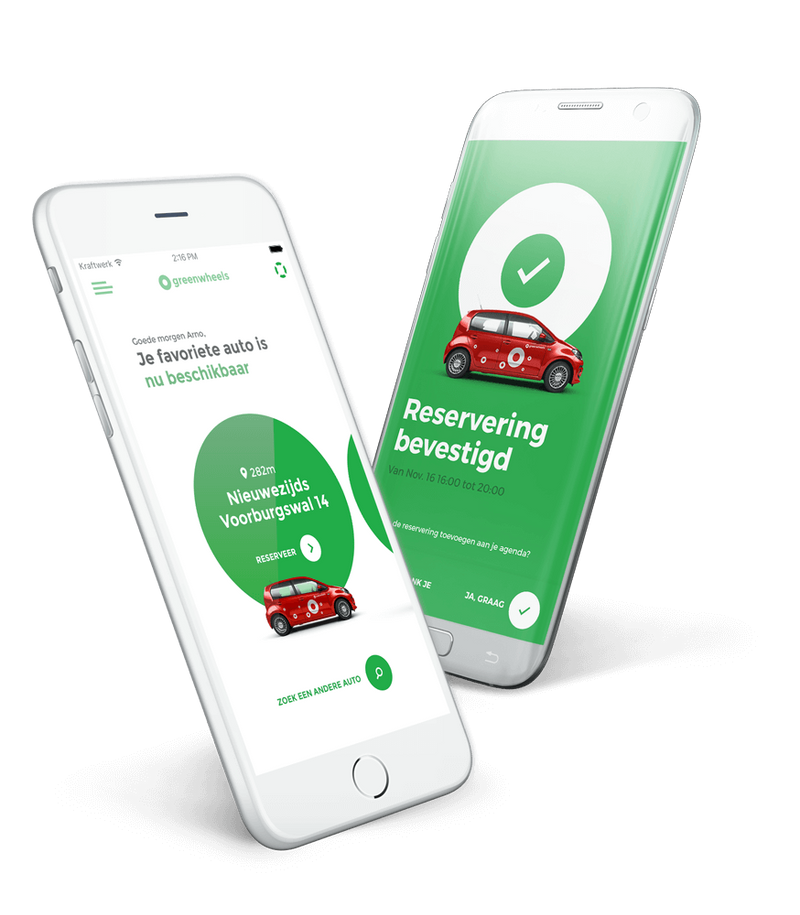 Reserveren, openen en sluiten van de auto gaat gemakkelijk via de Greenwheels app.
