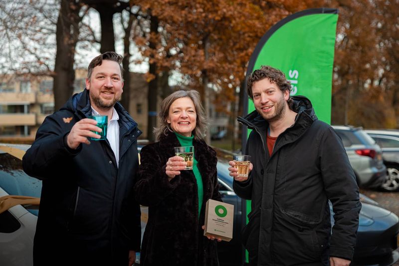 Op de foto, v.l.n.r.: Colin Bom (product manager B2C, Greenwheels), Gerdien Rots (wethouder Ruimtelijke ordening en mobiliteit, gemeente Zwolle) en Rick op den Brouw (manager operations, Greenwheels).