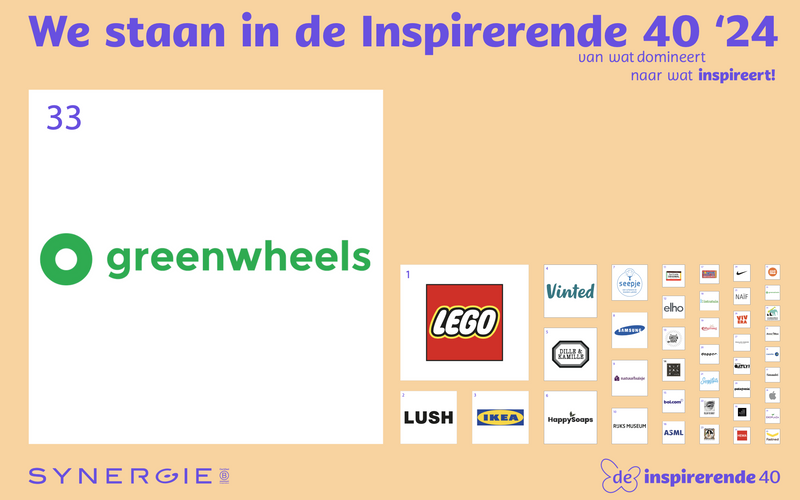 De jaarlijkse 'Inspirerende 40'-lijst brengt bedrijven samen die opvallen door hun positieve bijdrage aan de samenleving. Het onderzoek heeft plaatsgevonden onder ruim 6.500 Nederlanders. Naast Greenwheels zijn ook merken als Vinted, Happy Soaps en Patagonia opgenomen, allemaal bekend om hun duurzame, innovatieve en verantwoorde bedrijfsvoering.