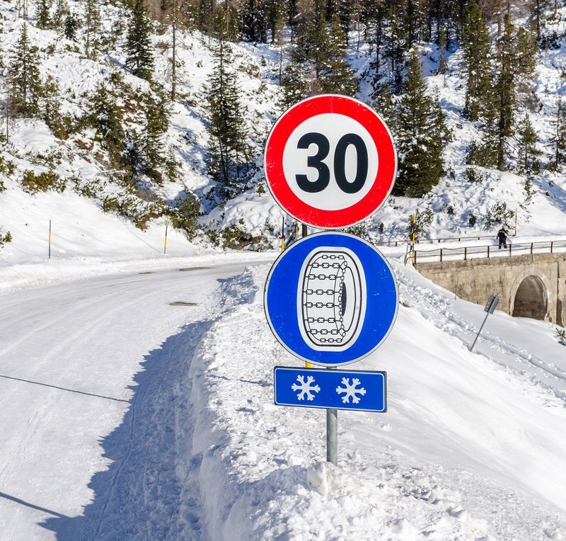 We raden je aan om passende sneeuwkettingen mee te nemen. Sneeuwkettingen geven extra grip op ondergesneeuwde wegen en op wegen met ijzel. In veel wintersportlanden zijn ze verplicht in zones die worden aangegeven met een speciaal sneeuwketting-verkeersbord. Elk type sneeuwketting kent een bijpassende maximale snelheid. Houd je hieraan bij het gebruik. Sneeuwkettingen liggen niet standaard in onze auto’s. Om de juiste sneeuwkettingen te kopen, heb je de bandenmaat van de auto nodig. Die vind je op onze autopagina.